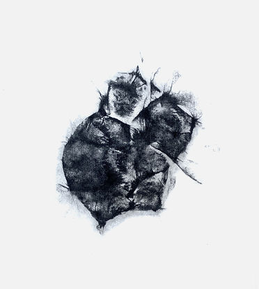 The shape of the rocks on the beach that I was working with in the photos above led me to want to try out drawings and paintings with an embodied anthropomorphic feel to them and I started by making an oil painting at home. I then did this monoprint at a larger scale and can imagine doing some big prints along this theme. I enjoyed being more painterly with the monoprint though it was difficult to control the diluting of the ink using white spirit as it meant some of the colour was lost by the time I printed. I need to do this more and work more quickly to find the technique that suits me. I shall continue these into Unit 3.