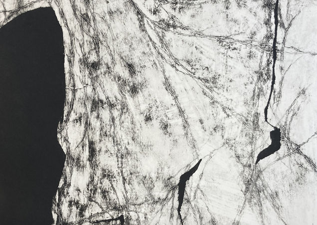Collagraphs reminiscent of Wilhelmina Barns-Graham black white charcoal drawings - glaciers